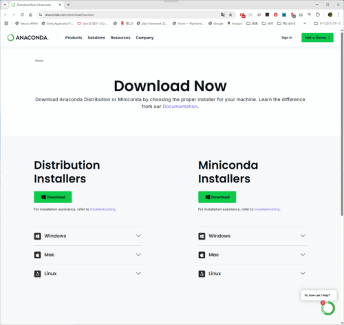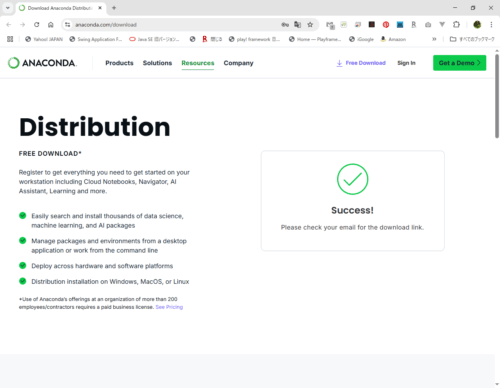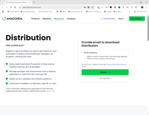 Anacondaには有料版と無料版がありますが、ここでは無償で使える「Anaconda Distribution」インストールします。