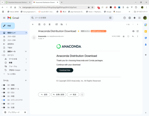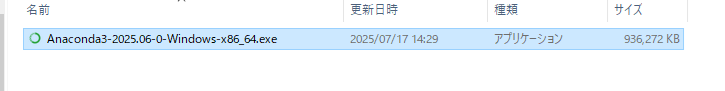2025年7月17日時点では「Anaconda3-2025.06-Windows-x86_64.exe」というファイルがダウンロードされました。