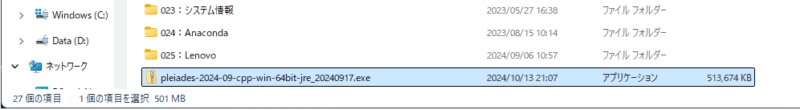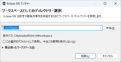 C:pleiades2024-09eclipseeclipse.exeを実行