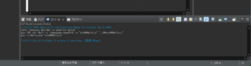 下部のコンソールに「Build Finished. 0 errors, 0 warnings.」と表示されたら完了です。