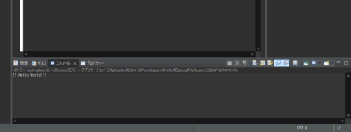 とりあえず「Hello World!!!」を出力するコードが出来ているので、実行してみます。