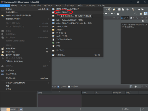 [ファイル]-[新規]-[C/C++プロジェクト]を選択