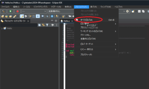 メニューから、[プロジェクト]-[すべてビルド]を選択します。