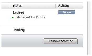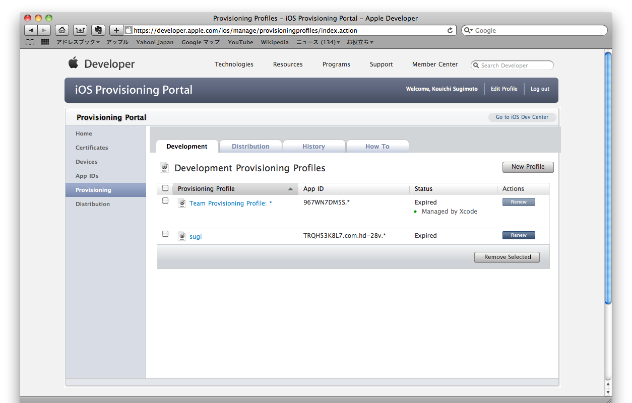 Team Provisioning Profile:*の方の[Renew]ボタンは押せなくなっていました。