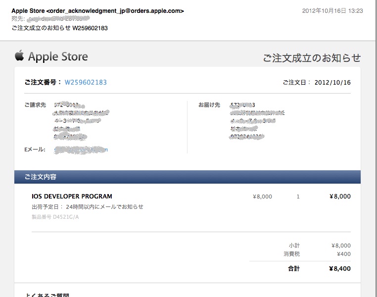 さらに、「ご注文成立のお知らせ」というメールが届きます。