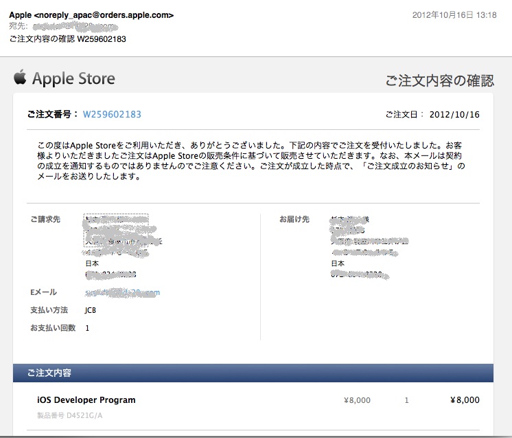 しばらくすると、「ご注文内容の確認」というメールが届きます。