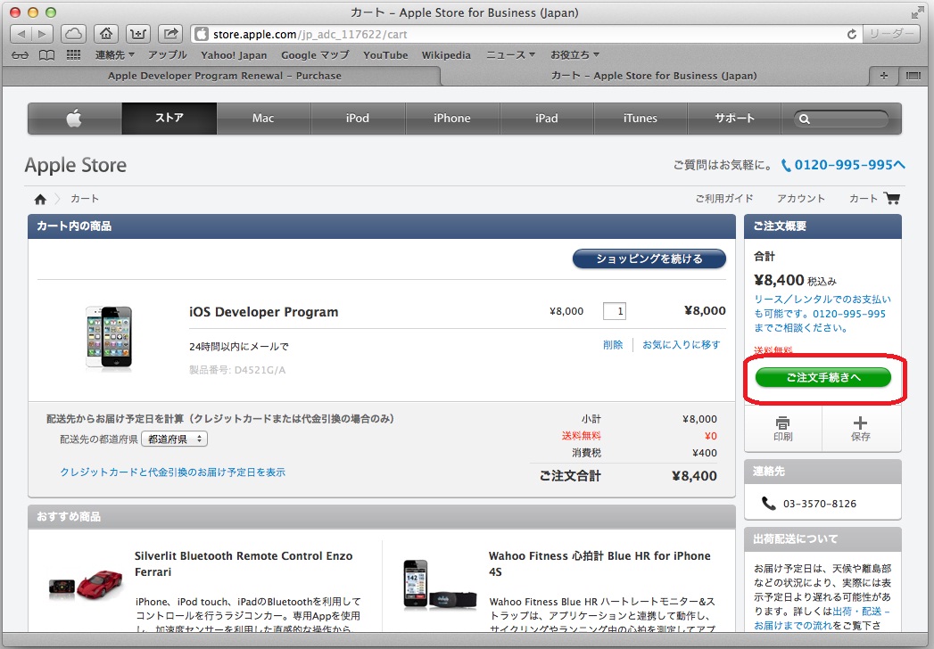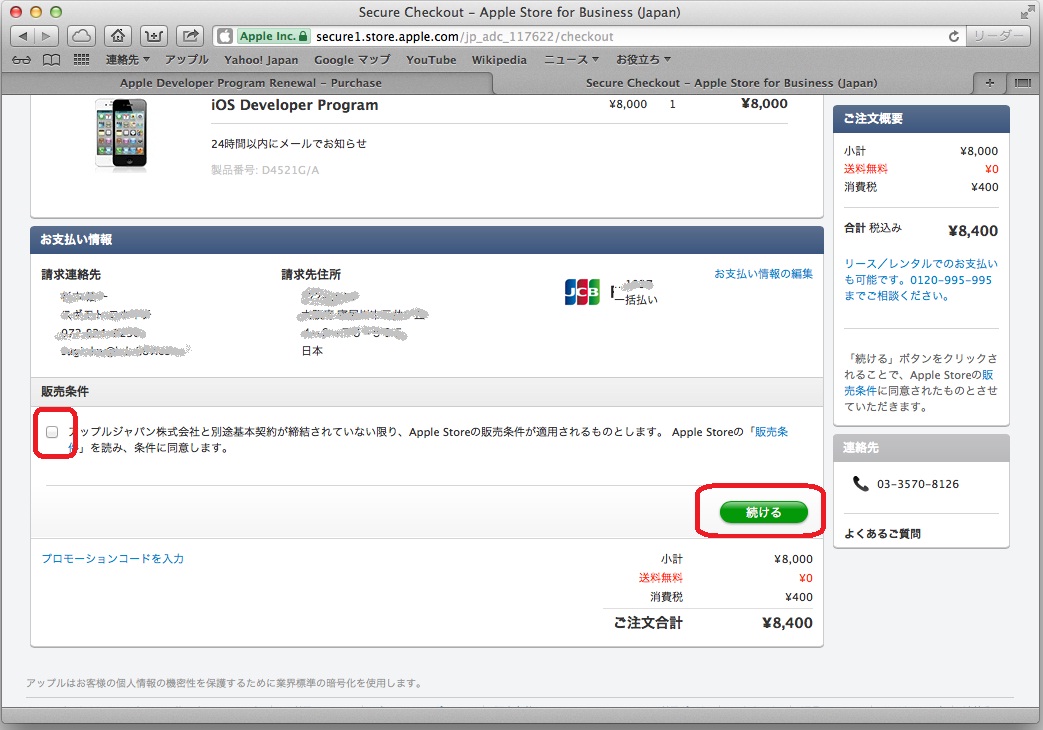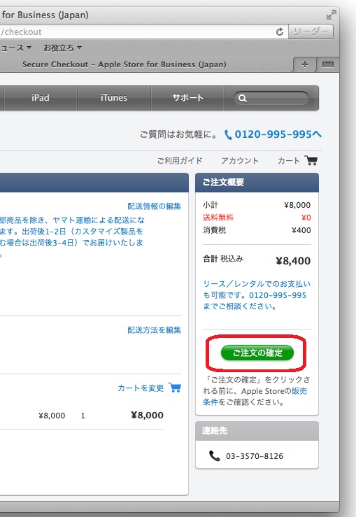 「アップルジャパン株式会社と別途基本契約が・・・」とかかれている所の左にある
