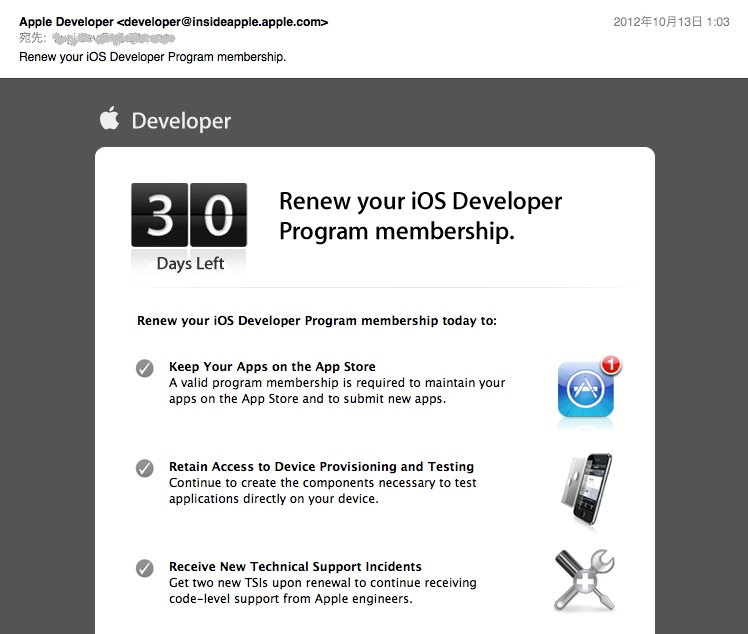あと30日でメンバーシップが切れるので、更新してくれということですね。