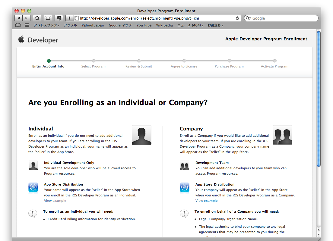 iPhone・iPadのアプリ作成準備(iOS Developer Programへの参加)