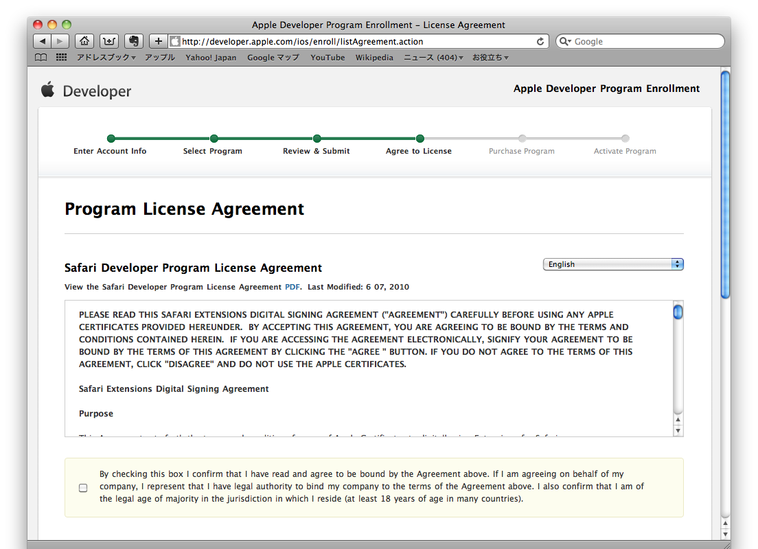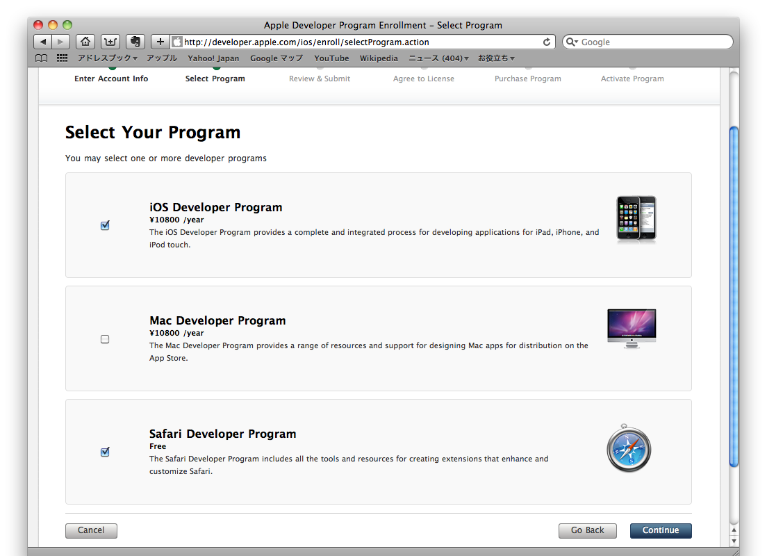 (ちなみに私は、一番下のSafari Developer Programは無料だったのでチェックいれときました)