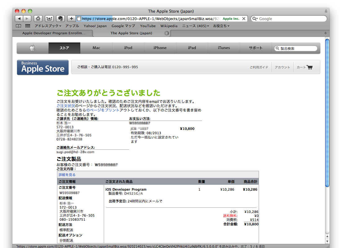 Apple Storeから購入後24時間以内には、Apple Developer Supportからメールが届くそうです。このメールには、プログラムリソースへのアクセス方法に関する情報が含まれているそうです。