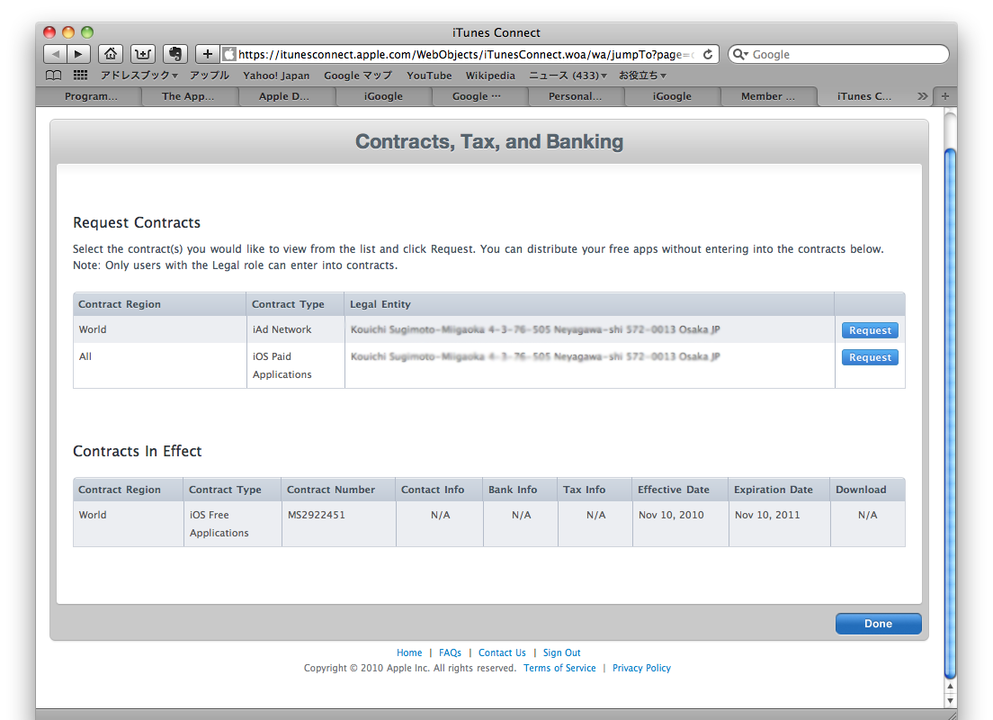iAd NetworkやiOS Paid Applicationsについての契約を要求できるみたいです。