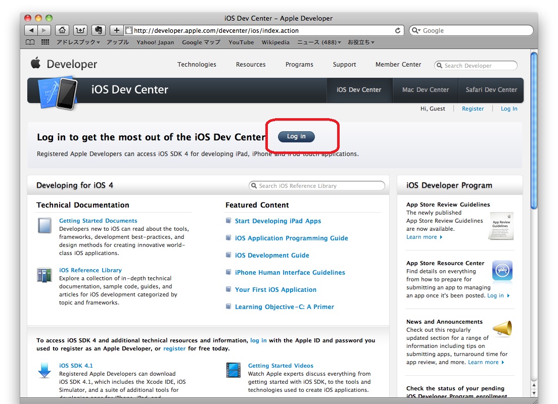 まいどおなじみのiOS Dev Centerのログインからスタートです。