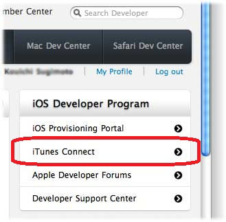 iOS Dev Center右側のメニューから、「iTunes Connect」を選択します。