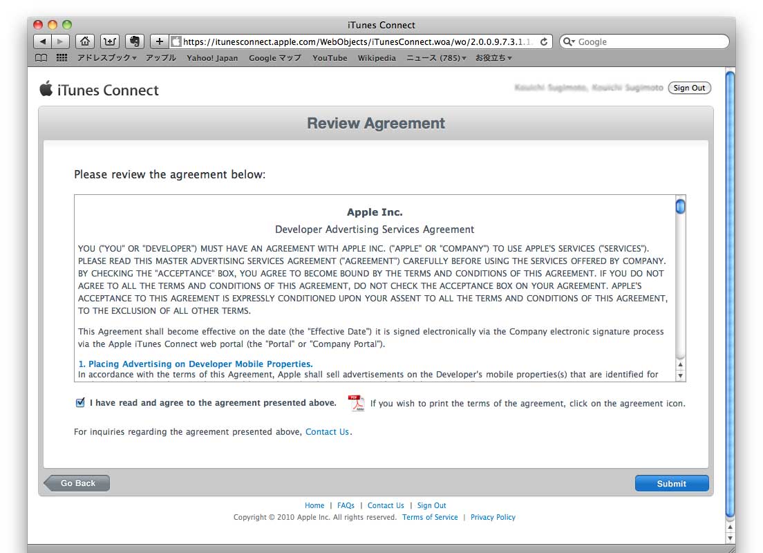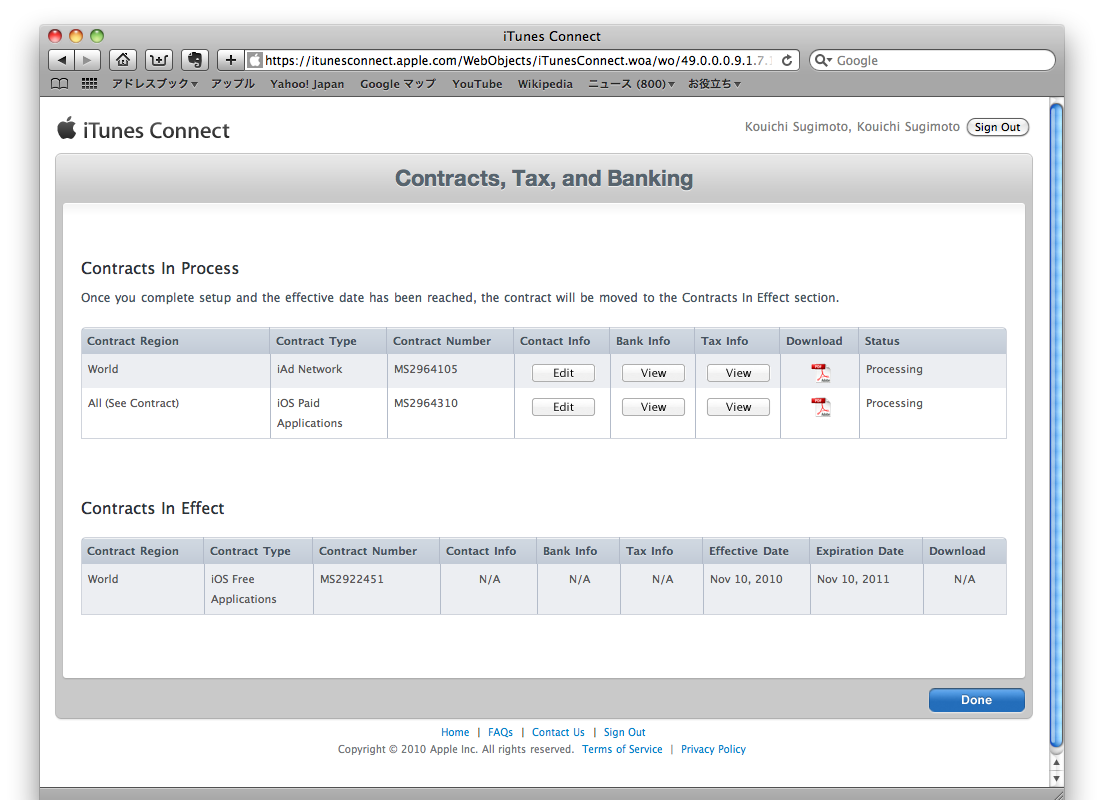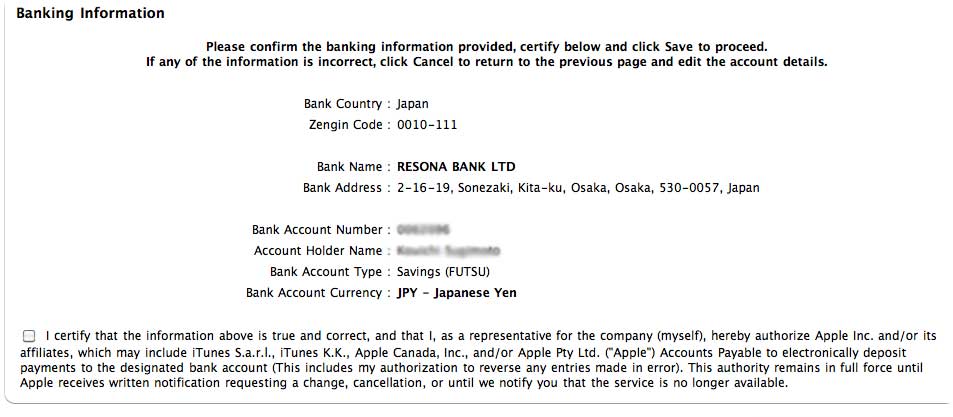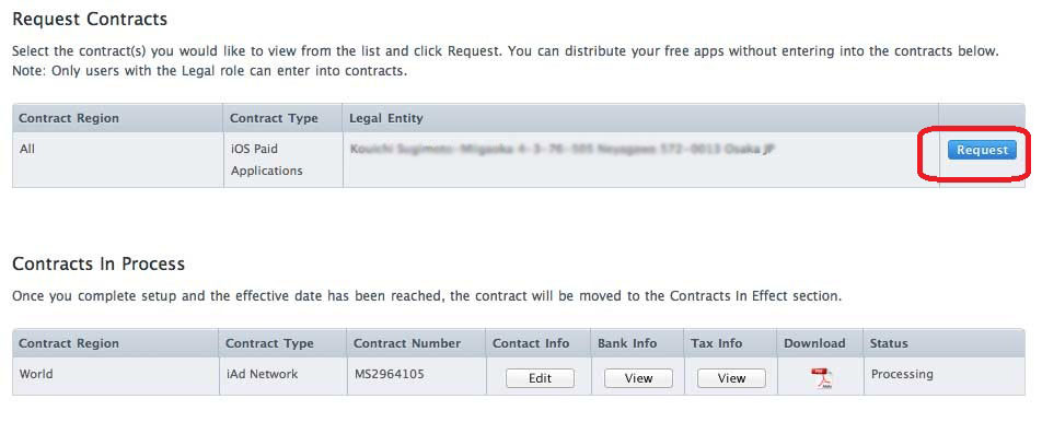先日、iOS Developer Programへの参加登録をした時に、情報不足のため保留にしていた、「Contracts, Tax, and Banking」の設定をやろうと思います。