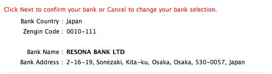 Confirm Bank Account Number: 確認用です。もう一度口座番号を入れます。