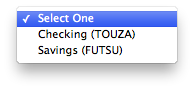 最初の銀行選択画面にもどりますので、「Select One」のリストボックスから今設定した値を選択します。