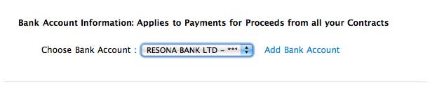 既存の銀行情報があれば「Select One」で選択できますが、未だ未登録ですので、「Add Bank Account」をクリックして、銀行情報を追加を開始します。