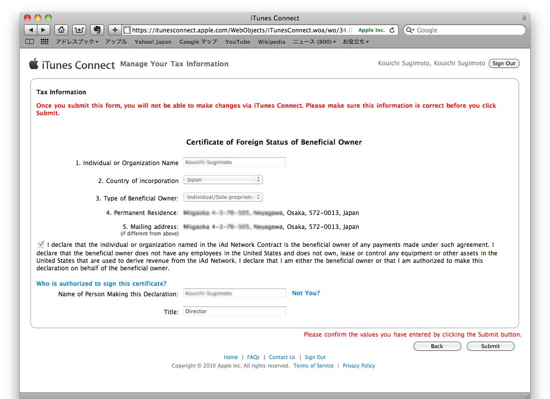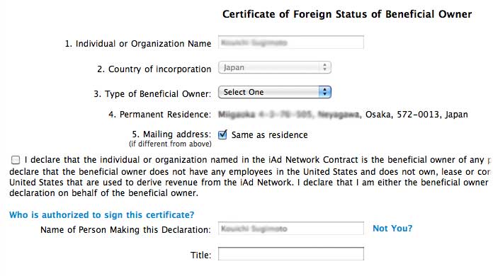 EINという米国納税者番号が必要だとか、その欄は0埋めでいいとか、いろんな話がありましたが、結局EINを入力する所なかったですね。