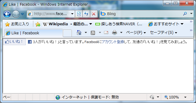 facebookの「いいね!」ボタンだけが表示されました。