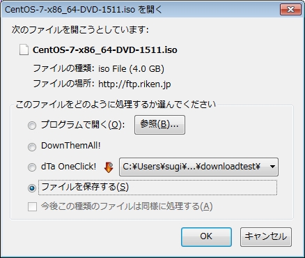 ダウンロードしたファイルは、2016/11/08現在は「CentOS-7-x86_64-DVD-1511.iso」でした。