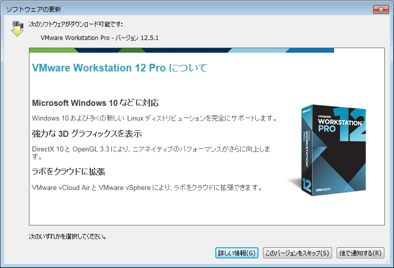 VMware Workstation 12 Proの宣伝ですので、「このバージョンをスキップ]で良いと思います。