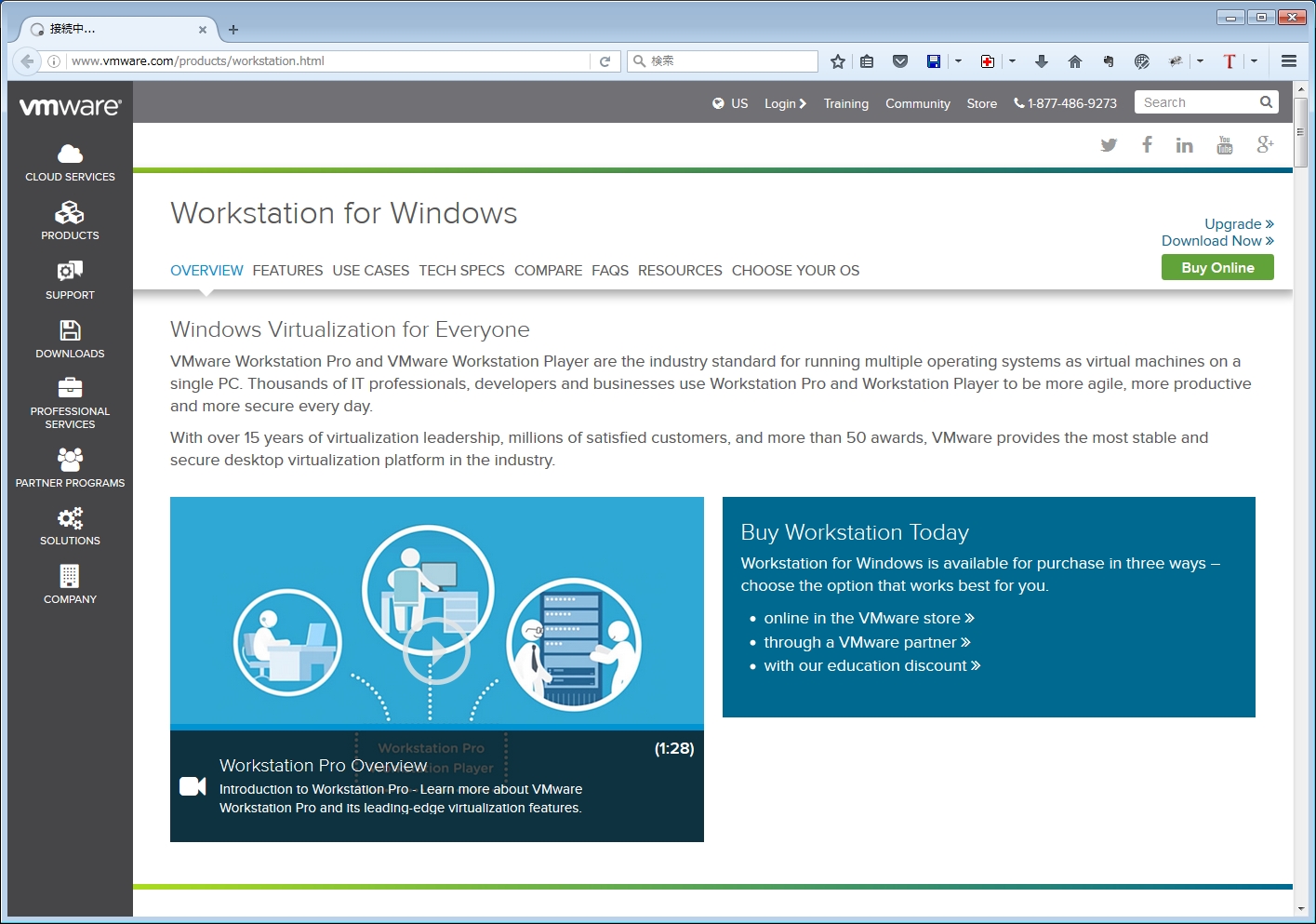 ダウンロードできたら、昨日インストールしたVMwareを起動し、ダウンロードしたISOファイルを使ってインストールします。