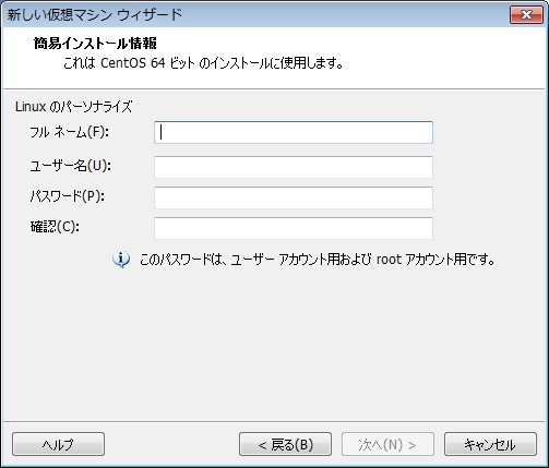 [次へ(N)>]をクリックすると、簡易インストール情報が開きますので、ユーザー名・パスワード等を入力します。