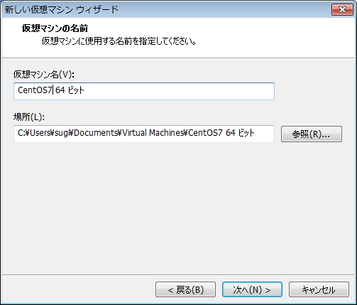 [次へ(N)>]をクリックすると、仮想マシンの名称が開きます。