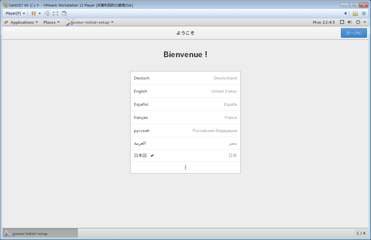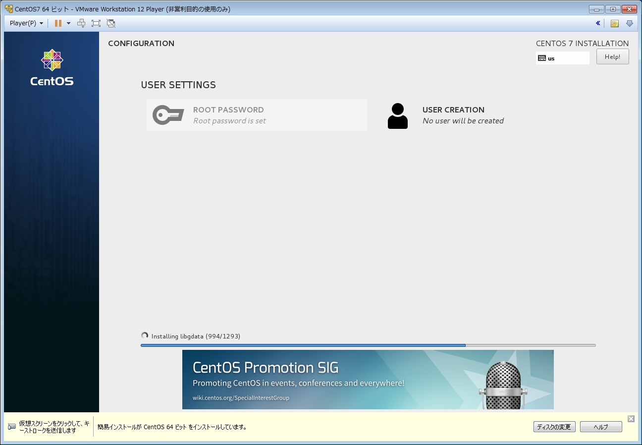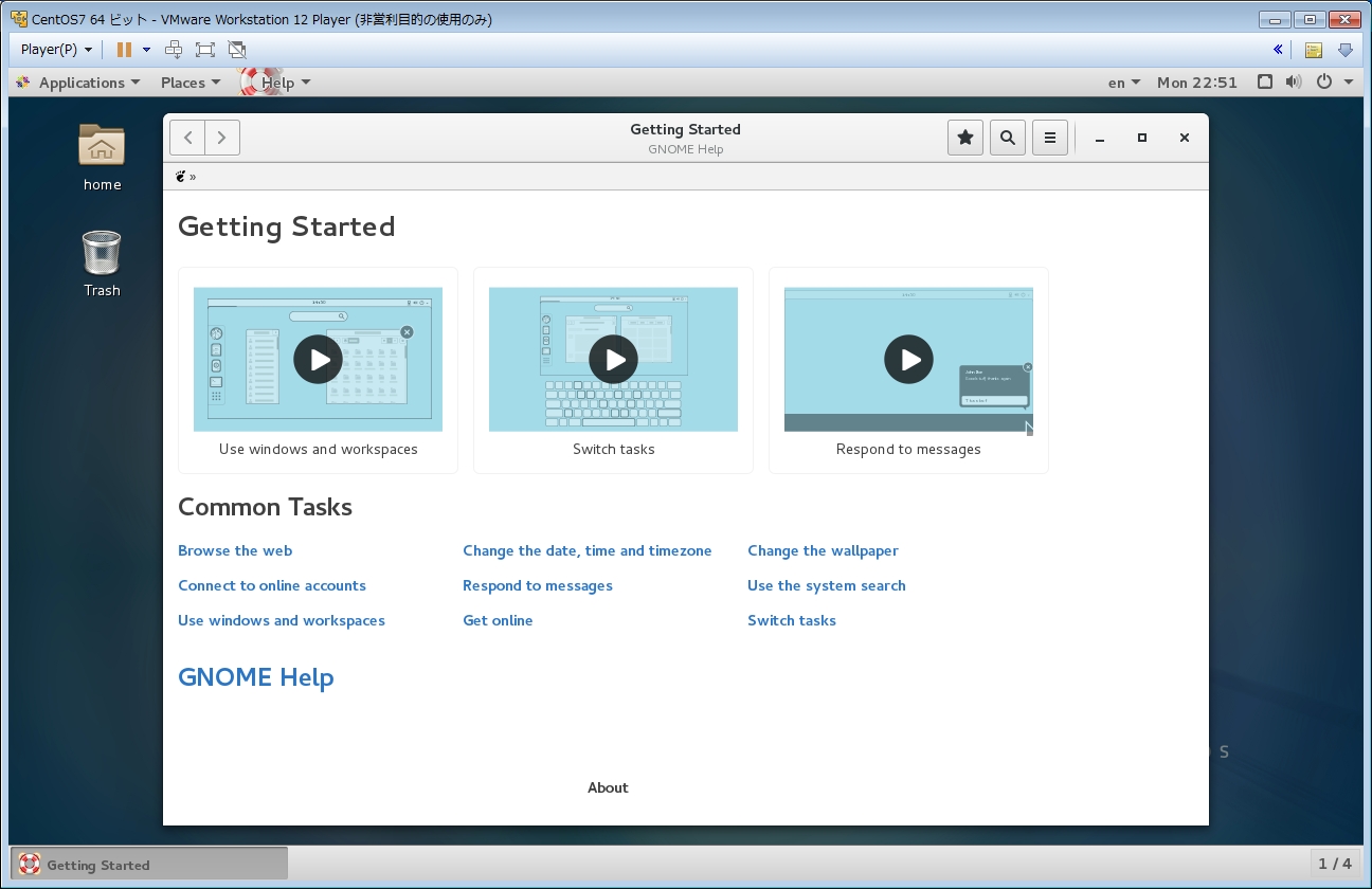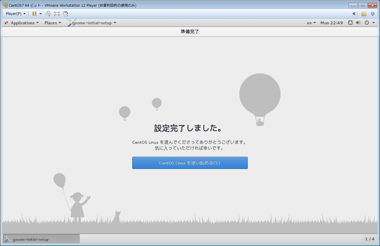 設定完了しましたので、[CentOS Linux を使い始める(S)]をクリックすると、