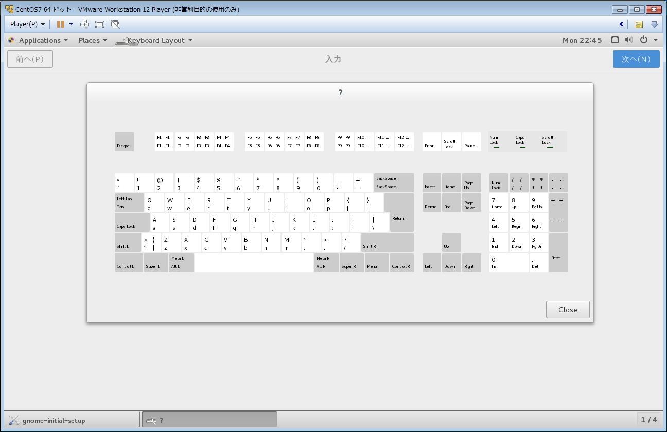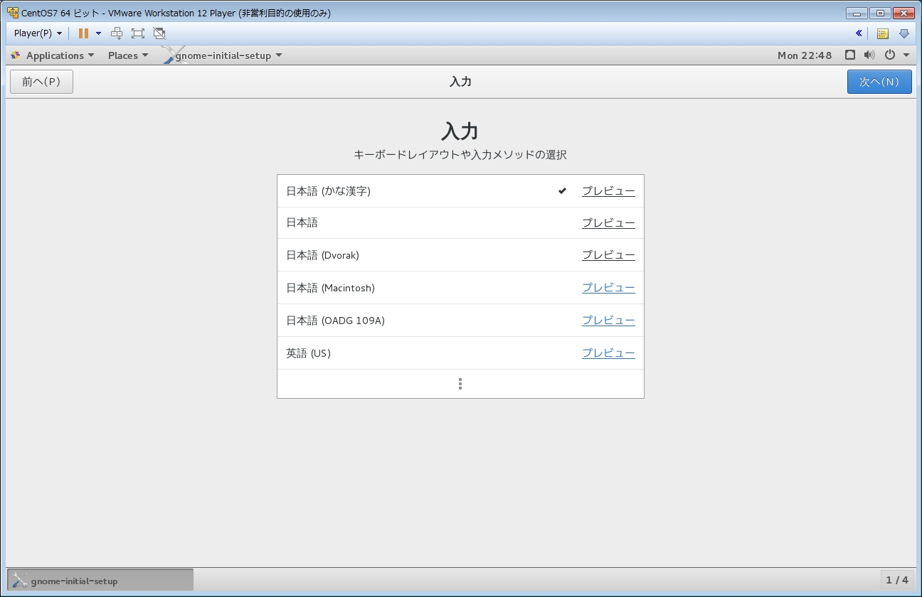 右上の[次へ(N)]をクリックすると、「キーボードレイアウトや入力メソッドの選択」画面。