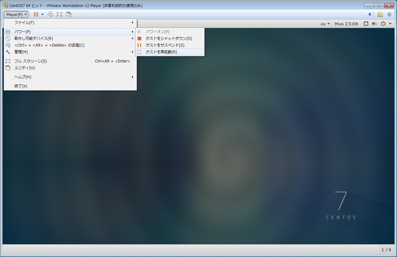 左上メニューの[Player(P)]-[パワー(P)]-[ゲストを再起動(R)]を選択