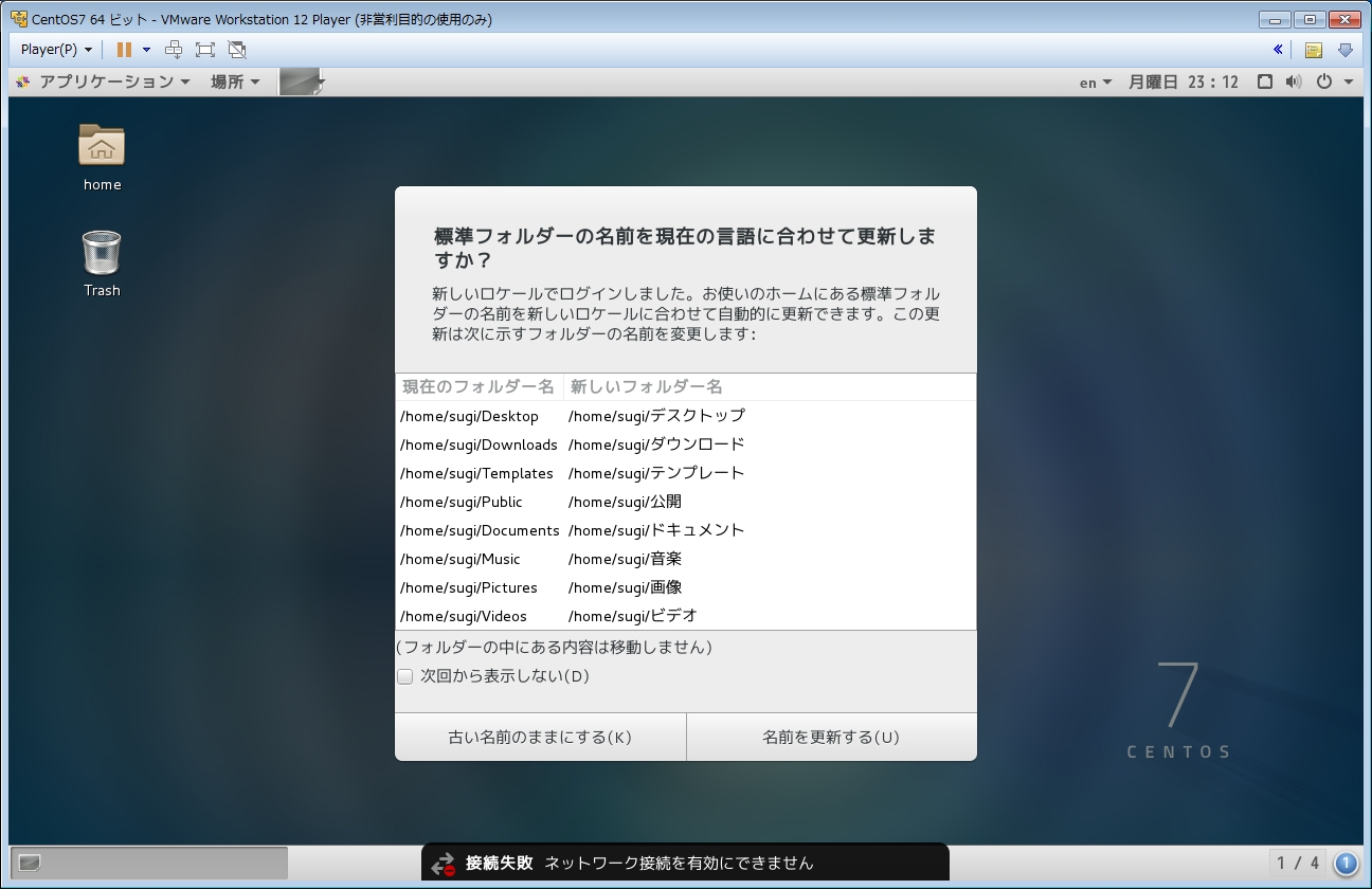 英語のフォルダ名を日本語のフォルダ名に変更するか、そのままにするかを選択します。