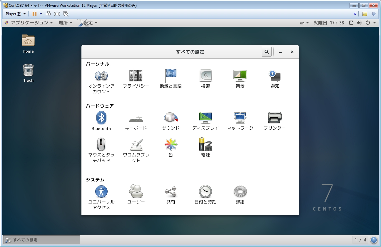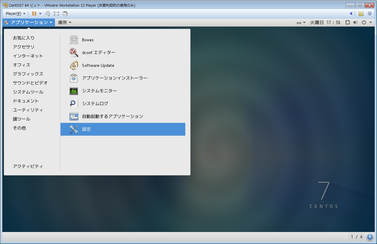これでCentOSの設定はだいたい終わりました。