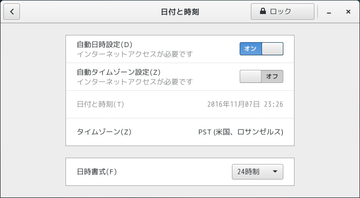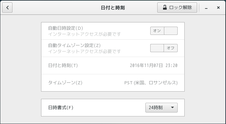 が、日時が違っていましたので設定します。