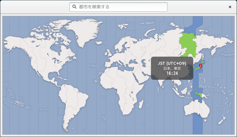 [タイムゾーン(Z)]をクリックし、開いた地図から「日本、東京」を選択します。