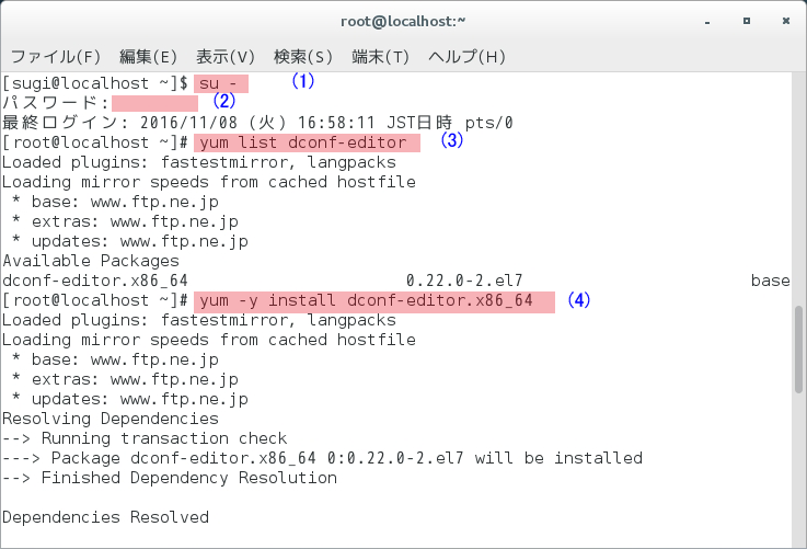 (1)インストールするために管理者に変身。
