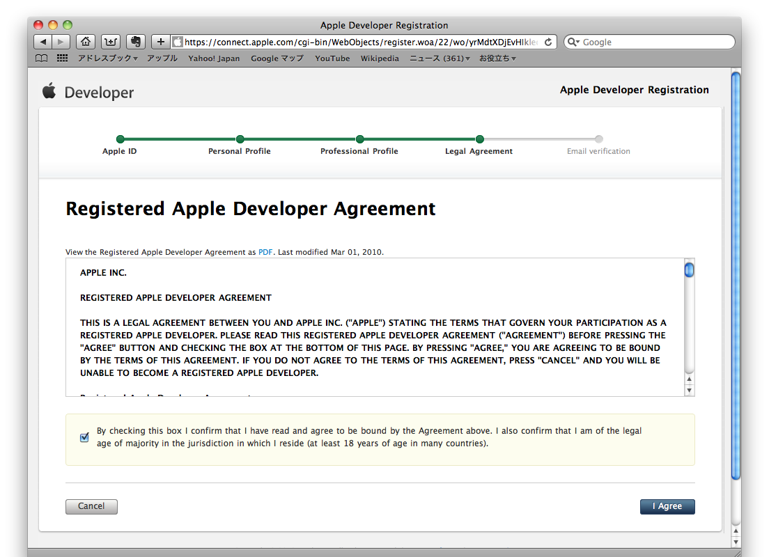チェックボックスにチェックを入れて、「I Agree」ボタンをクリックします。