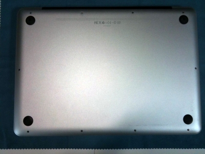 布の上にMacをひっくり返して置き、底にある10個のネジをすべてはずします。