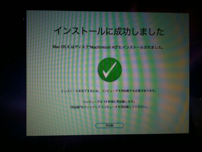 「適用」ボタンをクリックしてパーティションを作成したら、ディスクユーティリティを終了し、インストールを開始します。