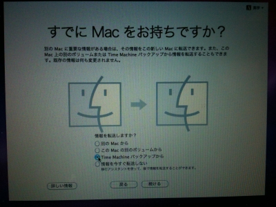 インストールが終了し再起動すると、「すでにMacをお持ちですか?」画面が開きます。