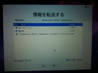 フォーマット後、Time Machineを使って、バックアップを取りました。