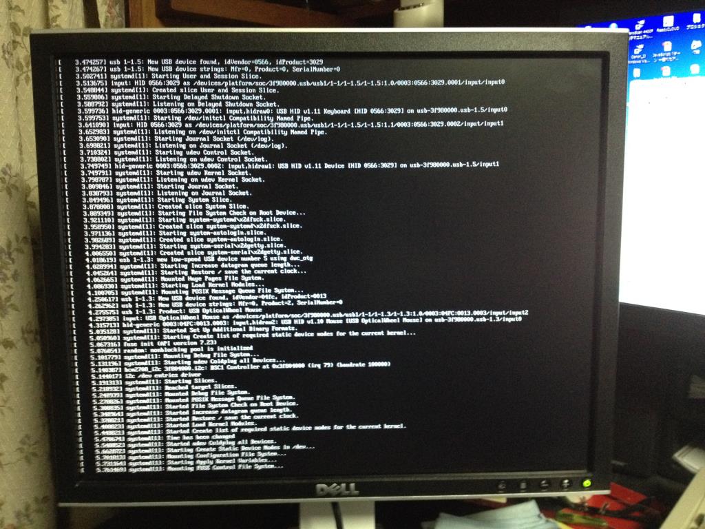 一度シャットダウンし、HDMIディスプレイを繋いで起動してみると、
