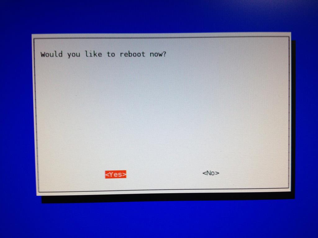 リブートするか聞いてきますので、<Yes>を選択