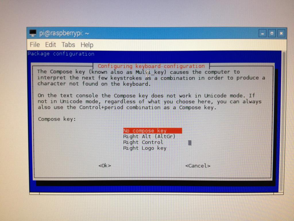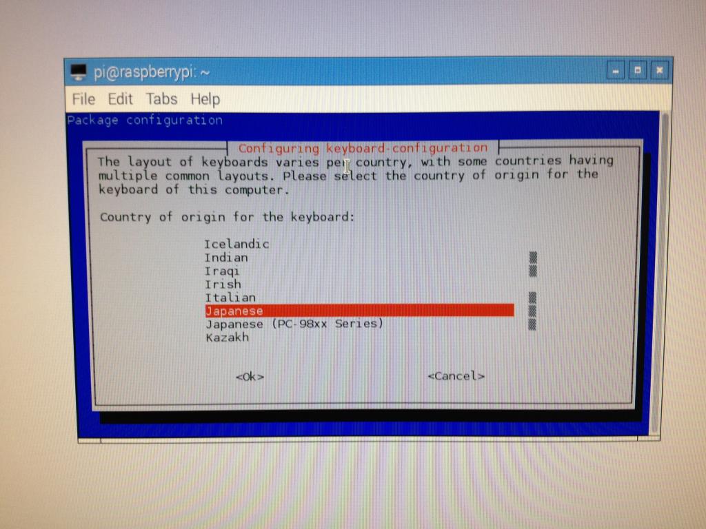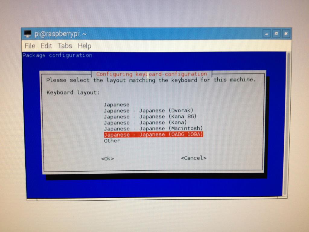 [Tab]キーを押すと<Ok>にフォーカスが移りますので、[Enter]を押します。