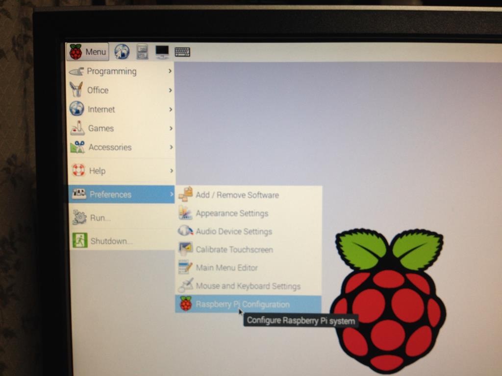 メニューから[Preferences]-[Raspberry Pi Configration]を選択