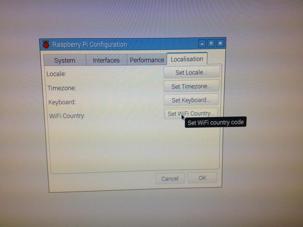 開いたダイアログから[Set WiFi Country]を選択