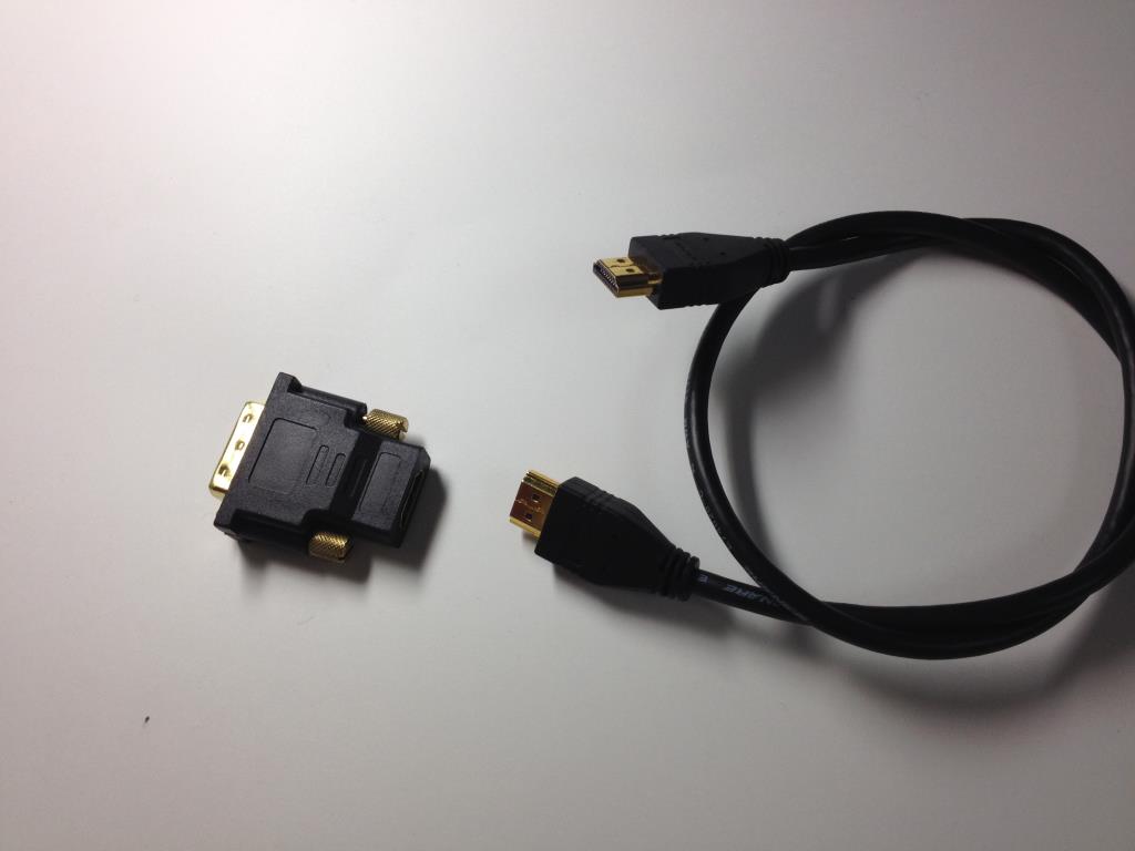 HDMIケーブルとHDMI→DVI-D変換コネクタを使って接続しています。