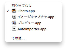 「このカメラを接続時に開くアプリ・・・」から、iPhoto.app を選択します。