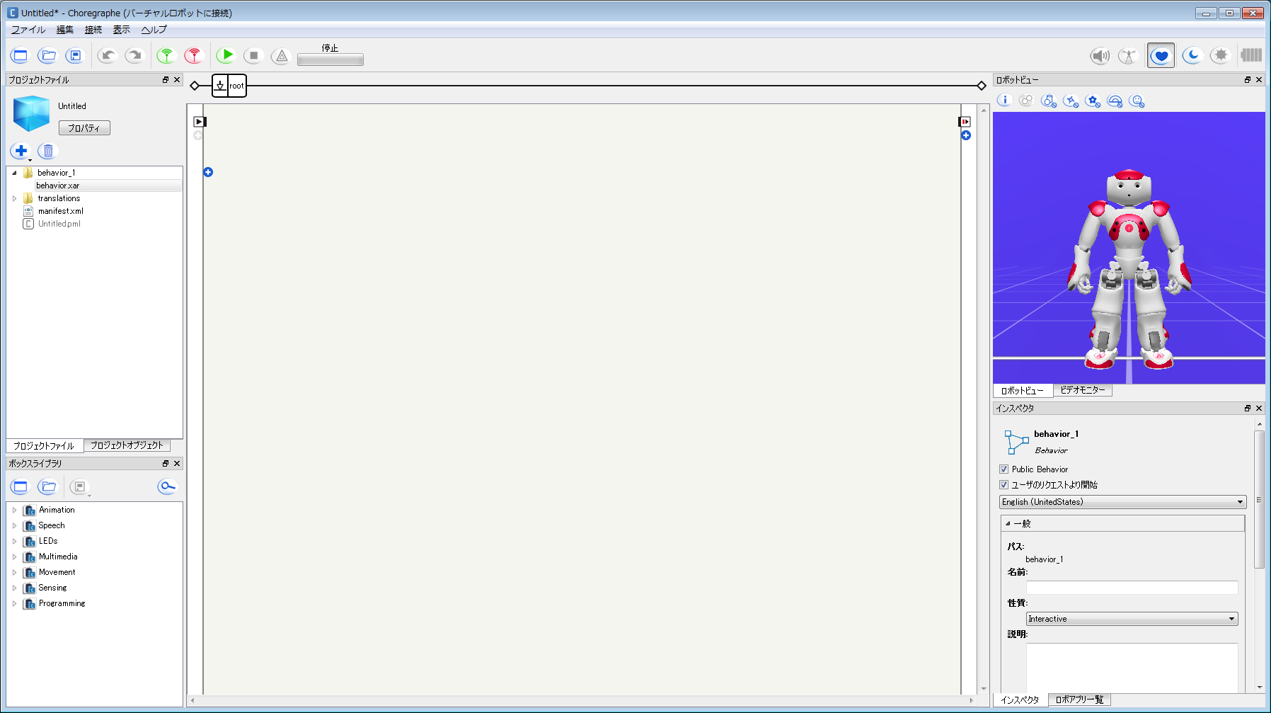 「新規プロジェクト・・・」を選択すると、Choregrapheウィンドウがアクティブになります。